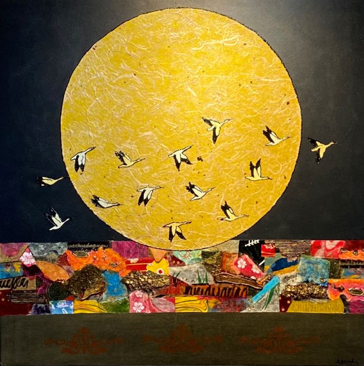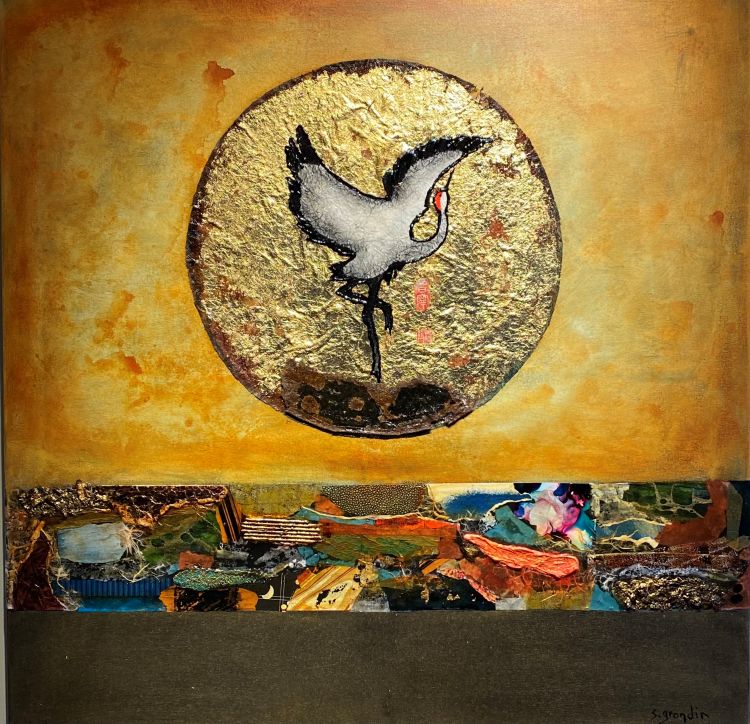 Abstraites par définition, le non-figuratif s’est tout de suite imposé dans les oeuvres de Sylvie Grondin que l’on dit “suggestives”. Chacun peut y trouver ses propres références et se surprendre à y voyager librement. Son travail s’initie d’une longue recherche picturale et plusieurs techniques dont les techniques mixtes, l’estampe, la fabrication et la transformation du papier utilisées afin d’approfondir sa technique. Le travail du papier occupe donc une place de premier plan dans son processus créatif. Différents procédés seront utilisés afin de lui donner des allures de vieux cuirs et de vieilles peaux qui rappellent l’altération par le passage du temps…la vie. Intégrer ces différents matériaux, rendre le tout harmonieux et sentir qu’ils pourront bien vivre ensemble, devient sa quête. En peinture comme en estampe, la surface colorée consiste en une superposition de couleurs, de multiples essuyages et d’ajouts de glacis qu’elle privilégie pour donner des effets de profondeur et transparence qui enrichissent ses oeuvres.